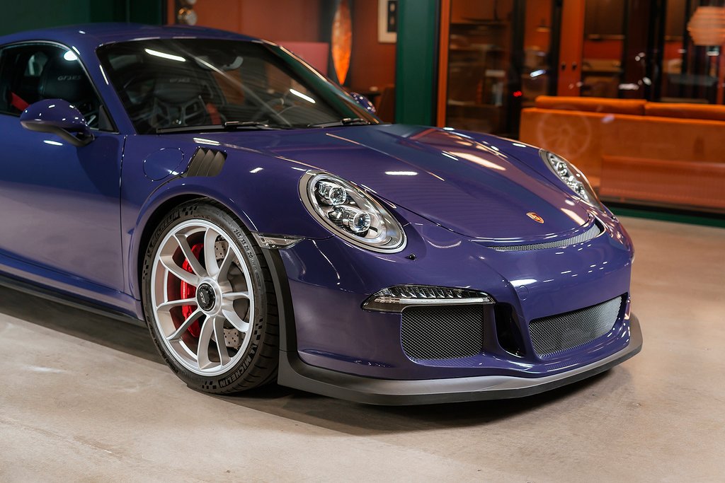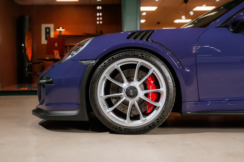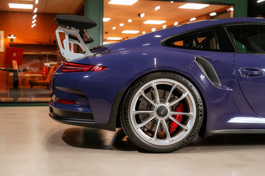 Svensksåld 991.1 GT3 RS med låga mil och extremt fint skick. Ultraviolet (M4A) med fälgar och uprights i Satin Aluminium. Uttagen 2015-07-20 från Porsche Center Syd. Det finns många ikoniska färger som prytt Porsches RS-bilar genom åren. 2,7 Carrera RS från 1973 i vitt med röda dekaler, 964 RS i Maritimblått/Sternrubin/Mintgrönt, 997 GT3 RS i Vipergrönt — men kanske mest ikonisk i modern tid: 991.1 GT3 RS i Ultraviolett. En färg så svår att lackera och reproducera att Porsche till slut tog bort den från standardutbudet. Resultatet? Den mest sällsynta färgen på en redan extrem bil. Vilket är synd- få bilar bär upp lila så bra som denna. Chris Harris i Chris Harris on Cars kör under sitt test 2015 först en Lava-orange bil på allmän väg men byter sedan till "Mr Purple" när han ska trycka ett par varv på Porsches testbana i Weissach. Populärkultur möter bilkultur och en ikon är född. Utrustad med bland annat: 082 - Extended Range Fuel Tank (90 liter) 454 - Cruise Control 579 - 6-PT Seat Belt, Passenger (även förare) 583 - Smoking Package 602 - LED Headlights inkl. PDLS Plus 619 - Bluetooth Mobile Phone Preparation 643 - Sport Chrono Package inkl. Porsche Track Precision App 674 - Vehicle Tracking System Preparation XSX - Seat Belts in Guards Red XXD - Door-Sill Guards in Carbon Fiber, illuminated XHM - Center Console Trim in Carbon Fiber 221 - Porsche Tourque Vectoring Plus 594 - Roof Lining in Alcantara® 003 - Clubsport Package Bilen är aldrig omlackerad och utrustad med PPF på utsatta områden. Komplett med all dokumentation och samtliga nycklar. A True Collectors Item! För mer information vänligen besök www.epicar.se eller slå en signal så berättar vi mer. Vi erbjuder förmånlig finansiering och tar gärna er bil i inbyte.