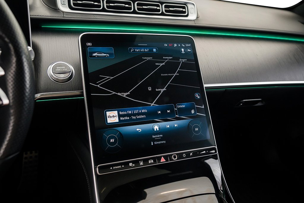 Svensksåld och synnerligen fullutrustad Mercedes-Benz S400d L 4-Matic i mycket fint skick. Uttagen 2022-03-09 och har till dags datum rullat 8859 mil. Sedan den första riktiga S-klassen såg dagens ljus 1972 har modellen varit ansedd som "världens bästa bil". Flertalet av de mest banbrytande och användbara funktionerna i dagens moderna bilmodeller härstammar från just Mercedes S-klass. Dagens modell, kallad W223, är inte direkt ett undantag. Vare sig du har erfarenhet av lyxsedaner från Audi, BMW, Bentley eller Rolls-Royce är S-klassen fortfarande "the benchmark" gällande komfort, innovativ teknik och säkerhet. Komforten i denna bil är minst lika imponerande som prestandan i en supersportbil från Italien. Detta exemplar är lackerat i Obsidian Black Metallic med Exclusive Leather Black/Anthracite och träpaneler i fineline Anthracite open-grained wood. Vidare är den bland annat utrustad med följande options: (Komplett utrustningslista skickas på begäran, 5 sidor) 772 - AMG Styling Package 950 - AMG Line RWN - AMG 21" Multi-Spoke wheels U26 - AMG Floor Mats 01U - Mercedes-Benz Connect 14U - Smartphone integration package 201 - Rear Axel Steering 21U - Dasch Cam 22U - Mercedes-Benz Connect MBUX Entertainment 445 - Head-Up Display with Augmented Reality 501 - 360 Camera 854 - Rear Seat Entertainment Plus 878 - Connected Light Ambient Lighting 891 - Premium Ambience Illumination P07 - Chaufför Package with Memory Funktion P09 - Sun Protection system P20 - Driving Assistance Package P34 - Exclusive Package P53 - Air Cleaning Package P55 - Night Package P82 - Anti-Theft Protection Package Plus PBH - Remote Parking Package Som tidigare nämnts skickas komplett utrustningslista per mail. En stilstudie i dekadent överdådighet med diskret och sportig exteriör. För mer information vänligen besök www.epicar.se eller slå en signal så berättar vi mer. Vi erbjuder förmånlig finansiering och tar gärna er bil i inbyte.