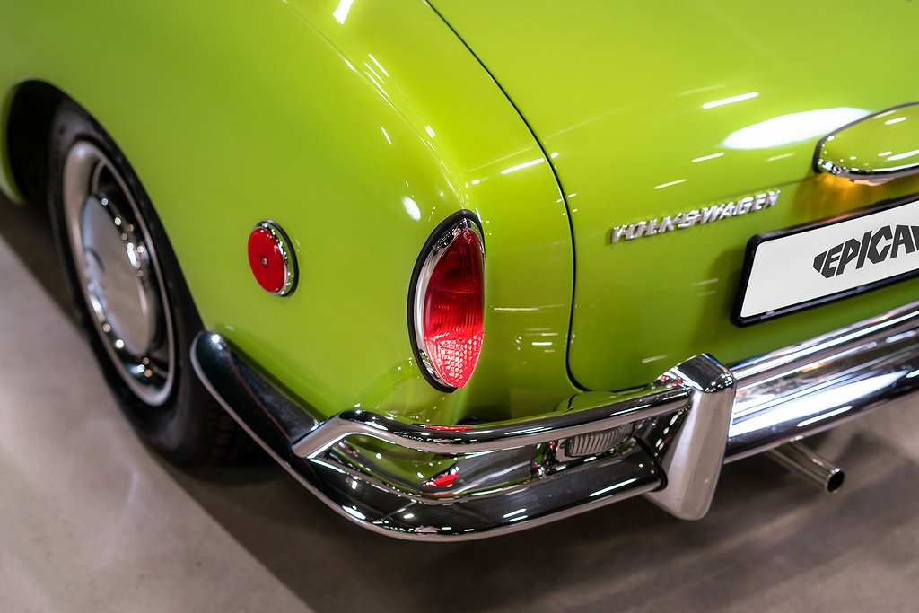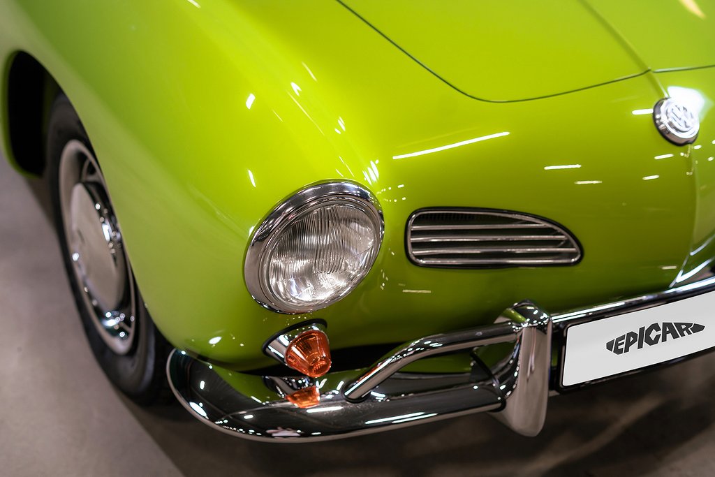Underbar VW Karmann Ghia 1500 från 1968 i totalrenoverat skick. Fullständig dokumentation från renoveringen finns att ta del av vid förfrågan. Lackerad i den härliga 70-talskulören Ravenna Green L65K med tidstypisk tvåtons-inredning i brunt och beige. Allt på bilen är renoverat eller nytt och skicket är minst lika bra som när den lämnade fabriken i Osnabrück 1968. Bilen går väldigt fint i motor och låda och följer med dagens trafik på ett förträffligt sätt. För mer information vänligen besök www.epicar.se eller slå en signal så berättar vi mer. Vi erbjuder förmånlig finansiering och tar gärna er bil i inbyte.