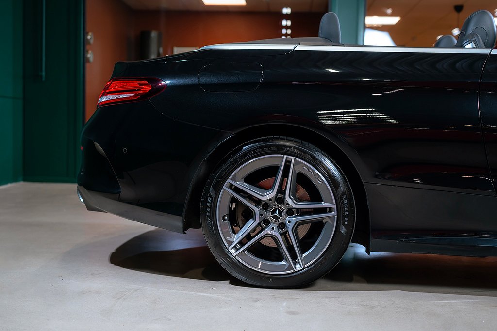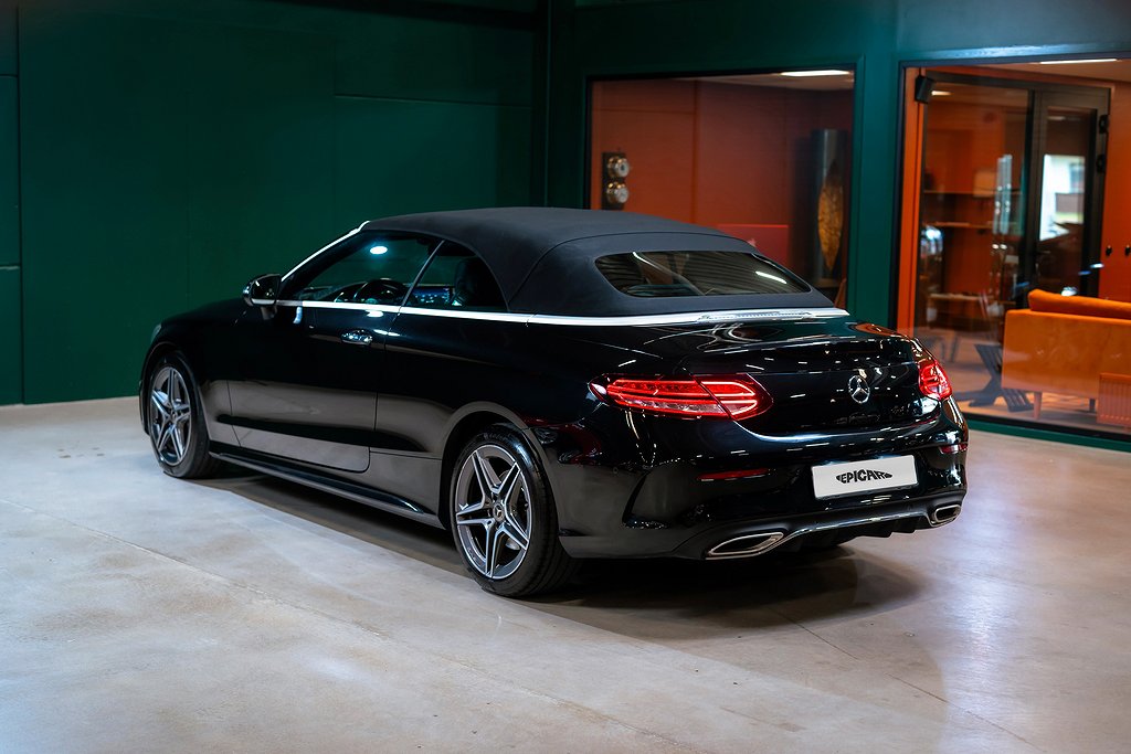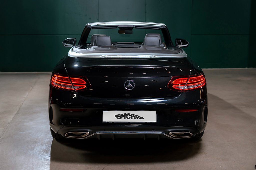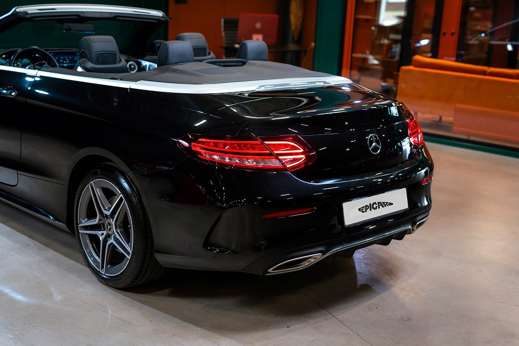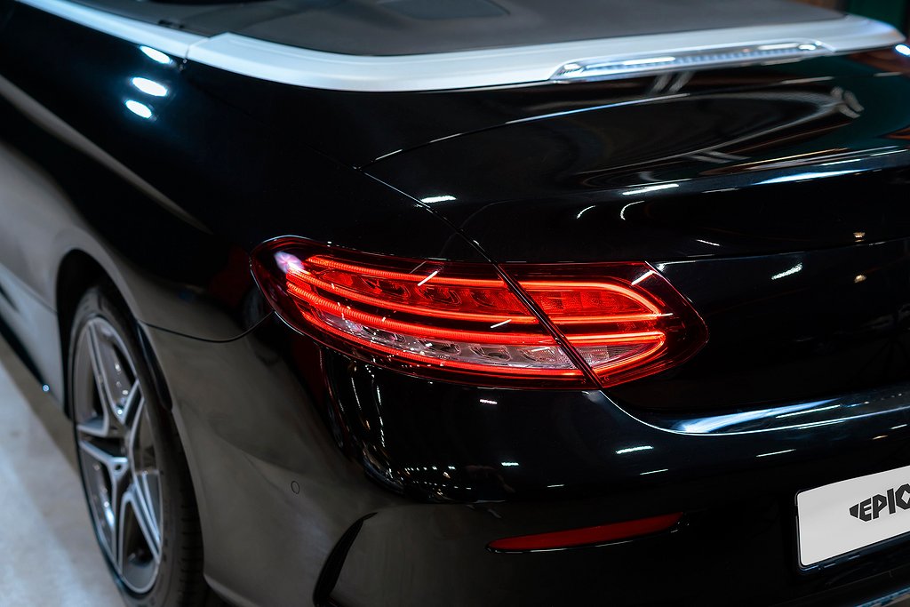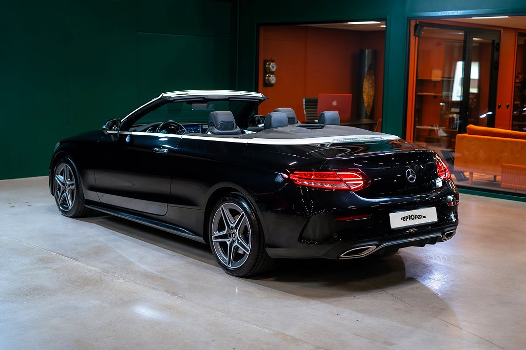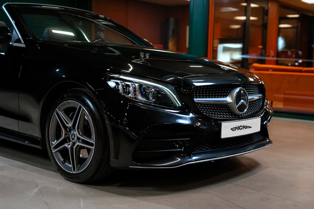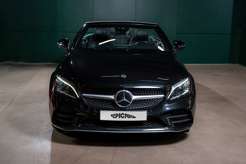 Mercedes-Benz C 200 Cabriolet med AMG Line och riktigt fin utrustningsnivå samt synnerligen välhållet skick. Obsidian Black Metallic med Black/Anthracite Nappaläder och interiörpaneler i Black open-pore ash wood. Bekväm och lagom sportig cabriolet som fungerar precis lika bra under vinterhalvåret om man så vill. Säljes med full servicehistorik, all dokumentation och alla nycklar. Bland annat utrustad med: 772 - AMG Styling, front spoiler, side skirts P29 - Interior AMG Line P31 - Exterior AMG Line U26 - AMG Floor mats 01U - Mercedes Connect 14U - Smartphone integration package 235 - Active parking assist 30P - Storage facility package 501 - 360º Camera 537 - DAB Radio 611 - Ambient Lighting 628 - Automatic high beam Control PLUS (IHC+) 642 - Dynamic LED head lights 6U1 - Acoustic soft top 810 - Premium sound system Burmester 897 - Front wireless telephone charging B16 - Tailpipe trim L5C - Supersport stegring wheee- leather deep embossed P47 - Parking package high P50 - Convertibel comfort package (AIRSCARF) U25 - Illuminated door sills För mer information vänligen besök www.epicar.se eller slå en signal så berättar vi mer. Vi erbjuder förmånlig finansiering och tar gärna er bil i inbyte.