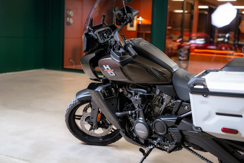 Utforska världen utan gränser med Harley-Davidsons första äkta äventyrsmaskin. Pan America kombinerar rå kraft, modern teknik och tidlös design – byggd för dig som vill köra långt bortom asfaltens slut. - Revolution Max 1250-motor på 152hk. Detta är en helt ny motor som Harley-Davidson utvecklat just för Pan America, istället för att använda en ombyggd motor från tidigare modeller, med dubbla överliggande kammar och variabla kamtider. Motorn är integrerad i motorcykelns ram som en bärande komponent, vilket minskar den totala vikten och ökar styvheten. - Adaptiv fjädring och justerbar sadelhöjd för optimal komfort. - Avancerade körlägen och offroad-anpassade system för full kontroll i alla terränger. - Fullfärgs TFT-skärm med navigation och uppkoppling via bluetooth. Extrautrustning: - Förstärkt startmotorvred - Handguards - Kylgrill - Kesstechljuddämpare - Front scratchplate - Tre aluminiumväskor/sidecases OEM Harley Davidson (30.000kr) - Förstärkt startmotorvred Oavsett om du vill korsa kontinenter eller hitta nya stigar runt hörnet, levererar Pan America en trygg och stabil körupplevelse redo för alla typer av äventyr. Hojen säljs med full dokumentation samt nycklar och är i absolut felfritt skick med endast 385 mil på mätaren. För mer information vänligen besök www.epicar.se eller slå en signal så berättar vi mer. Vi erbjuder förmånlig finansiering och tar gärna er bil/hoj i inbyte.