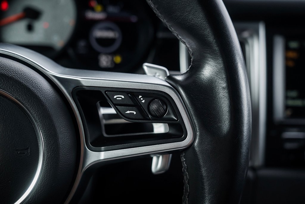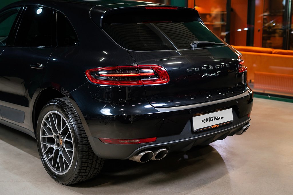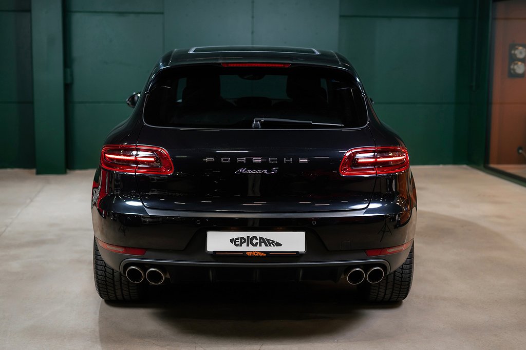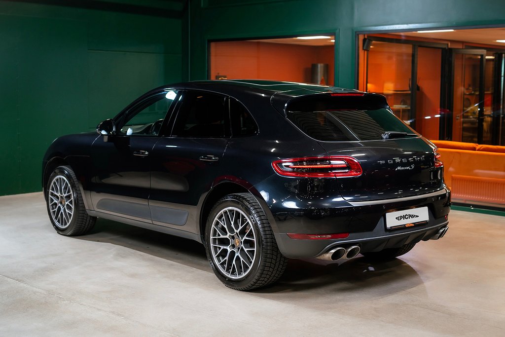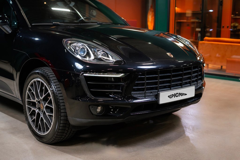 Svensksåld Porsche Macan S i Jet black Metallic med inredning i utökat svart skinn. En sportig och alldeles lagom stor SUV som kombinerar prestanda, komfort och tysk ingenjörskonst på hög nivå. Bilen är utrustad med Porsches välljudande 3.0-liters V6 biturbomotor på 340 hk, kopplad till den blixtsnabba PDK-dubbelkopplingslådan och fyrhjulsdrift, vilket ger en mycket inspirerande körupplevelse oavsett vägförhållanden. Bilen är försedd med vanliga stötdämpare (stålfjädrar) och inte luftfjädring som kan vara en källa till problem när kompressor och bälgar börjar bli till åren. Bilen har kontinuerligt servats enligt Porsches rekommendationer och är i mycket gott skick både invändigt och utvändigt med 100% originallack. Säljes komplett med all dokumentation samt två nycklar. Bland annat utrustad med: 0M2 - Bigger fuel tank 75-litre 1NP - Wheel Center Caps with Colored Porsche Crest 2ZH - Heated Multifunction Steering Wheel 3FU - Panoramic Roof 3J7 - Porsche Rest on Headrests 4F2 - Keyless Entry 7X2 - ParkAssist (front and rear) 7Y1 - Lane change assist (LCA) 9W5 - Mobile Phone preparation (Bluetooth) CY3 - 20" RS Spyder Design Wheels PE6 - Adaptive Sport Seats 18-way with Memory Package QR4 - Sport Chrono Package För mer information vänligen besök www.epicar.se eller slå oss en signal så berättar vi mer. Vi erbjuder förmånlig finansiering och tar gärna er bil i inbyte.