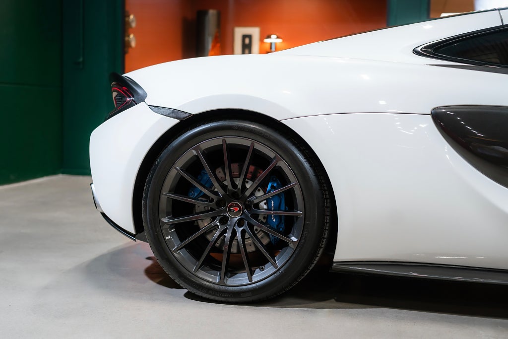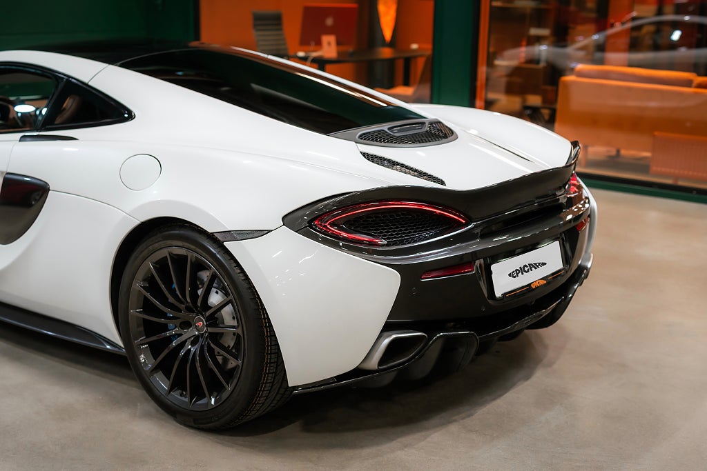 McLaren 570 GT lackerad i tillvalsfärgen Elite Pearl White med otroligt smakfull interiör i Saddle Tan Nappa-läder kombinerat med massvis av kolfiberdetaljer. En riktigt skön mix av brittisk lyx och teknisk innovation. 19"/20" smidda GT-fälgar i Stealth finish och kontrasterande bromsok i blått från MSO (McLaren Special Operations). Bilen har en mycket potent 3, 8-liters flat plane crank-V8 med dubbla turbo som på pappret ger 570 hästkrafter men som många vet levererar McLarens motorer alltid en bra bit över utsatt effekt. Detta är en bil som kräver respekt vid inspirerande körning och verkligen bjuder på en riktigt ball körupplevelse när man står på men är samtidigt snäll och bekväm även på längre turer. GT-modellen har mjukare chassisättning än syskonet 570S och praktiskt öppningsbar bagagelucka för lättare inlastning men bibehåller så klart McLarens berömda och extremt vridstyva kolfiber-monocoque. Utrustningslistan består bland annat av: - Elektriskt justerbara och uppvärmda säten - Fantastiskt ljudsystem från Bowers & Wilkins - 7-tums pekskärm med backkamera - Parkeringssensorer - Nose Lift - Bluetooth-anslutning - 2-zons klimatanläggning För mer information vänligen besök www.epicar.se eller slå en signal så berättar vi mer. Vi erbjuder förmånlig finansiering och tar gärna er bil i inbyte.